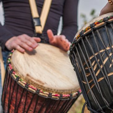 Rope-tuned skin-covered goblet drum. Percussion instrument from West Africa.